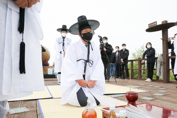 [충청뉴스큐] 충북 단양군은 연분홍 철쭉이 만발한 소백산 연화봉 일원에서 ‘2021년 단양군 소백산 산신제’를 개최했다고 지난 1일 밝혔다.