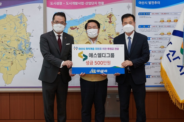 오세현 아산시장은 “모두가 힘든 시기에 어려운 이웃을 위해 나눔을 실천해 주신 ㈜SLD그룹에 감사드린다”며 “아산시도 시민의 행복한 삶을 위한 복지 향상을 위해 힘쓰겠다”고 말했다.