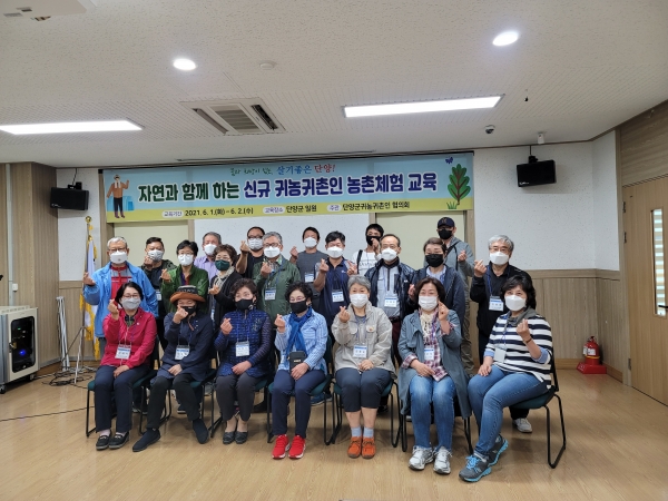 군은 단양군귀농귀촌인협의회 주관으로 지난 1일부터 2일까지 타 지역 거주 도시민과 신규 귀농·귀촌인 등 24명을 대상으로 진행한 ‘녹색쉼표 단양 느껴보기’ 체험 프로그램을 성공리에 마쳤다고 밝혔다.