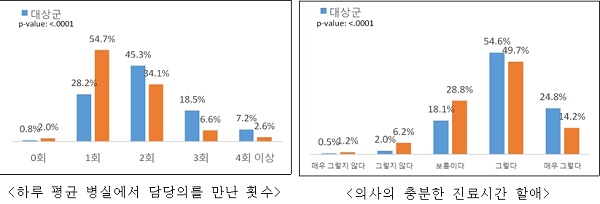 입원전담전문의를 통한 입원환자 진료서비스 개선 평가연구에서는 전반적인 입원환자의 진료만족도가 2∼3배 상승한 것으로 나타났다.