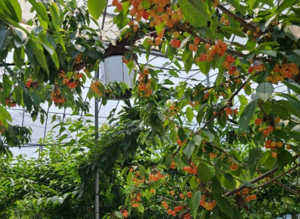 [충청뉴스큐] 청주시 농업기술센터가 가덕면 계산리 체리농가에 0.2ha 규모의 체리 저온피해 대응 안정생산 시범사업을 추진해 지난해 대비 4배의 수량 증가가 예상돼 농가의 큰 호응을 얻고 있다.