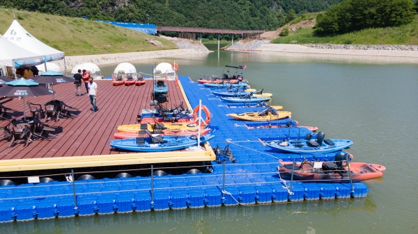 7일 군은 지난해 별곡 수상레포츠 건설사업의 준공으로 생태체육공원 계류장이 완성된 데에 이어 지난 달 상진리 하상주차장 일원에 상진나루 계류장 설치사업을 완료했다고 밝혔다.