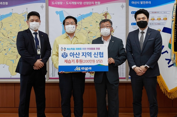 [충청뉴스큐] 아산신협·아산북부신협·행복신협·아산서부신협이 사회취약계층의 쾌적한 주거 공간 마련을 위해 7일 아산시를 방문해 200만원 상당의 제습기를 전달했다.