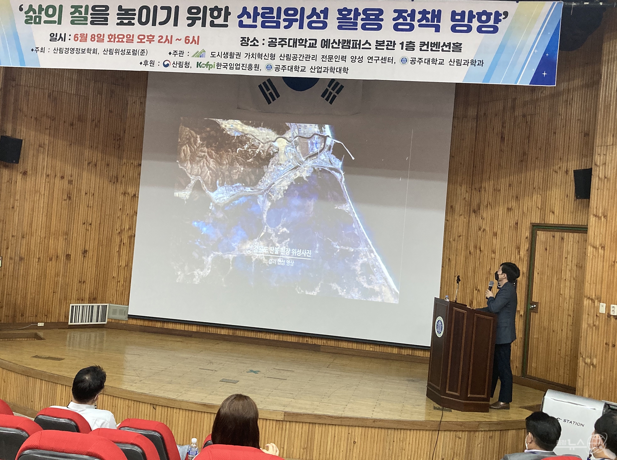 국립 공주대학교(총장 원성수) 도시생활권 가치혁신형 산림공간관리 전문인력 양성 연구센터(센터장 이영진)와 산림과학과(학과장 이영진)는 지난8일 예산캠퍼스 컨벤션홀에서 “2021 산림위성포럼 심포지엄-삶의 질을 높이기 위한 산림위성 활용 정책 방향”을 주제로 산림 관련 기관 재직자 및 산림과학과 학부 및 대학원생 등이 참석한 가운데 포럼을 공동 개최했다“고 밝혔다.
