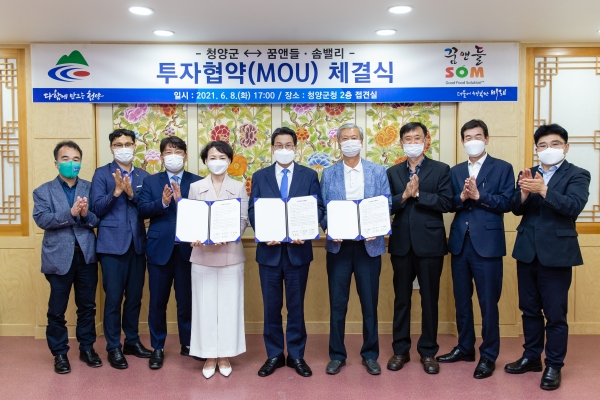 [충청뉴스큐] 청양군과 농업기업법인 꿈앤들, 솜밸리가 지난 8일 농특산물 가공사업 추진을 위한 투자협약을 체결했다.