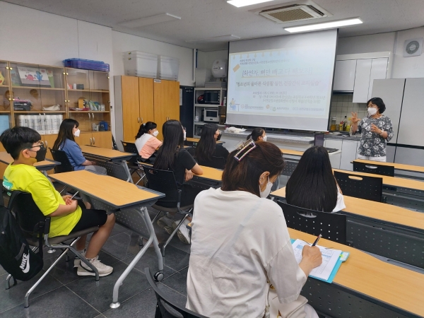 본 프로그램은 보건소와 청소년문화센터에서 진행되는 청소년 대상 사업으로 어린이급식관리지원센터에서는 ‘청소년의 올바른 식생활 실천 교육 및 건강 간식 조리 실습’ 등을 함께 교육했다.