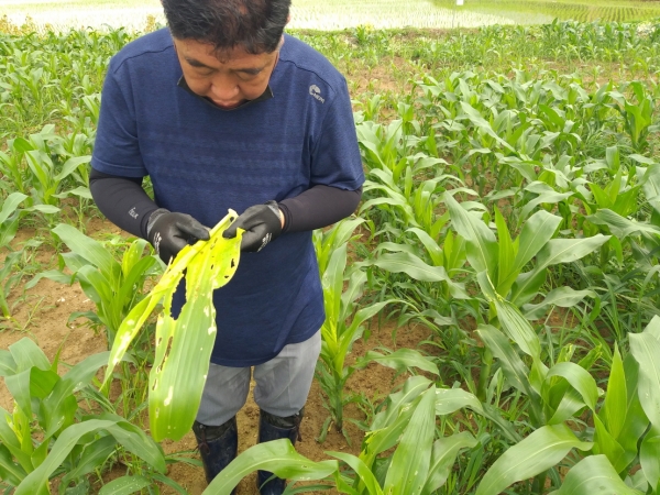 이번에 유충이 발견된 옥수수 포장에서는 현재 피해주율 1%내외 수준으로 즉시 방제를 실시했다.