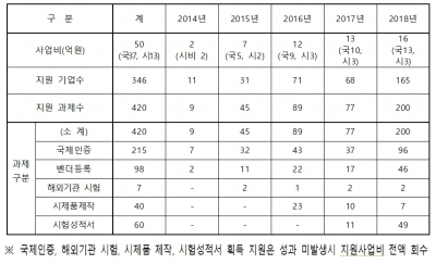 한편 이 사업은 지난 2014년부터 시행되었으며, 2017년까지 4년간 220건의 과제를 선정하여 181개사에 국제인증 및 벤더등록, 해외시험기관 시험, 시제품 제작 등을 지원했다.