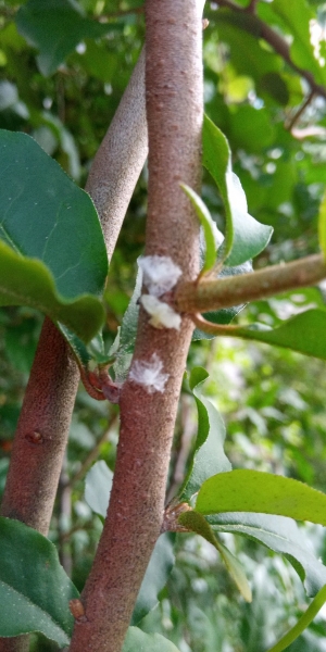 방제 시기를 놓치면 성충이 대추, 사과, 포도 등의 가지에 붙어 수액을 빨아먹고 분비물을 배출하면서 큰 피해를 가져온다.