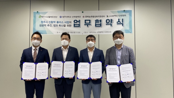 [충청뉴스큐] 청주시신활력추진단, 충북농촌활성화지원센터, 청주대학교산학협력단, 충북ICT산업협회는 18일 청주시신활력플러스사업의 성공적 추진과 성과확산을 위한 업무협약을 체결했다.