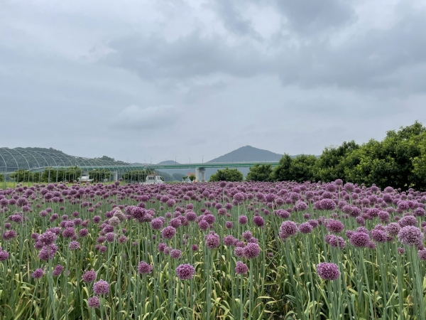 21일 시에 따르면, 코끼리마늘 꽃은 백합목 백합과에 속하는 구근 식물로 10월 초순 식재를 통해 다음 연도 6~7월에 커다란 보랏빛의 꽃을 볼 수 있는 경관작물로 알려져 있다.