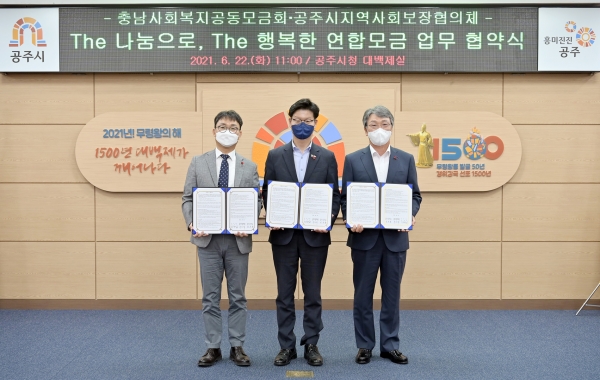 [충청뉴스큐] 공주시는 지난 22일 충남사회복지공동모금회 및 공주시 지역사회보장협의체와 함께 복지사각지대 해소와 나눔문화 확산을 위한 ‘The 나눔으로 The 행복한 연합모금’ 업무협약을 체결했다.
