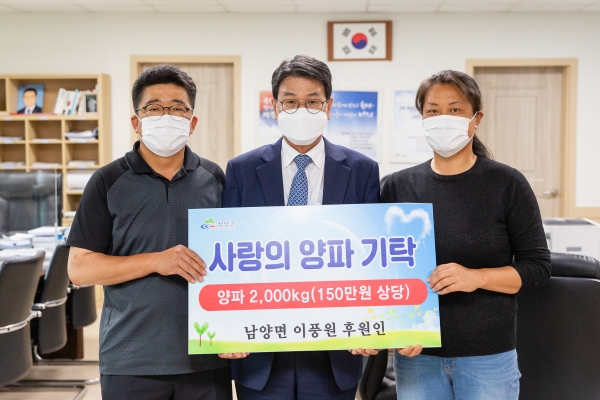 이 씨는 “사회적 거리두기로 몸과 마음이 지친 군민들에게 조금이나마 도움이 되기를 바라는 마음에서 양파를 기부하게 됐다”며 “따뜻한 정을 나눌 수 있어 감사하다”고 전했다.