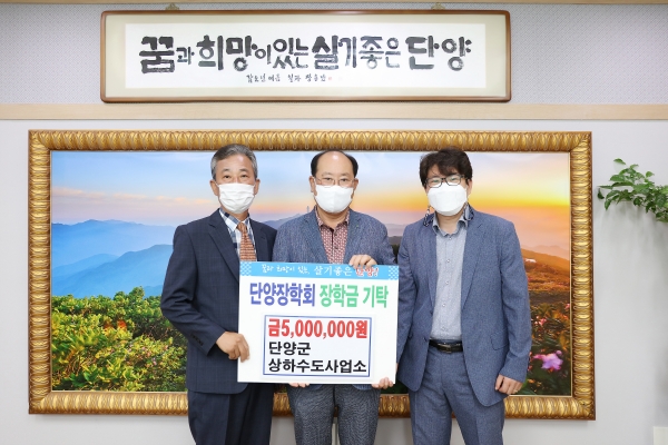 [충청뉴스큐] 단양장학회는 단양군 상하수도사업소에서 지역인재 육성을 위해 사용해 달라며 500만원의 장학금을 기탁했다고 지난 25일 밝혔다.