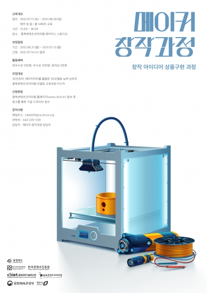 [충청뉴스큐] 충청북도와 청주시가 주관하고 청주시문화산업진흥재단이 운영하는 충북콘텐츠코리아랩이 오는 7월 12일까지 ‘메이커 창작과정’ 참여자를 모집한다.