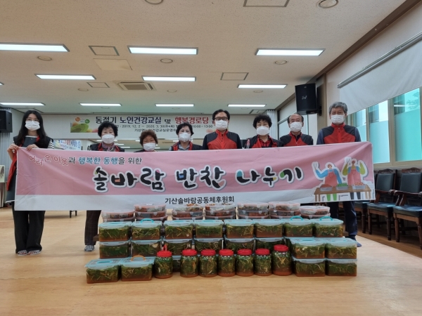 이날 전달된 밑반찬은 기산솔바람공동체후원회 후원금으로 마련됐으며 노기래 후원회장은 “우리가 흘리는 작은 땀방울이 모여 기산솔바람공동체 밑반찬을 매달 기다리시는 어르신들에게 행복한 시간을 드릴 수 있다는 것에 큰 만족감을 느낀다”며 “앞으로도 계속 노력해 어르신들에게 반찬걱정을 덜어 드리고 행복함을 선사하도록 노력하겠다”고 전했다.