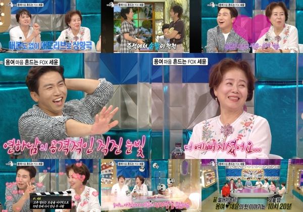 MC 유세윤은 선우용여에게 “예뻐졌다”며 애틋 멘트와 직진 눈빛을 날리곤 급기야 눈물까지 보이며 ‘상황극 장인’다운 면모를 뽐냈다.