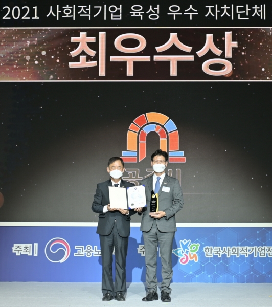 [충청뉴스큐] 공주시가 고용노동부가 주관한 ‘2021년 사회적기업 육성 우수 자치단체’ 평가에서 최우수상을 수상했다.