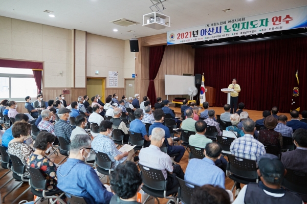 [충청뉴스큐] 대한노인회아산시지회가 2일 지회 4층 강당에서 대한노인회 오치석 지회장, 전대규 충남도연합회장, 오세현 시장, 분회장 및 신규 경로당 회장 등 100여명이 참석한 가운데 2021년 노인 지도자 연수를 실시했다.