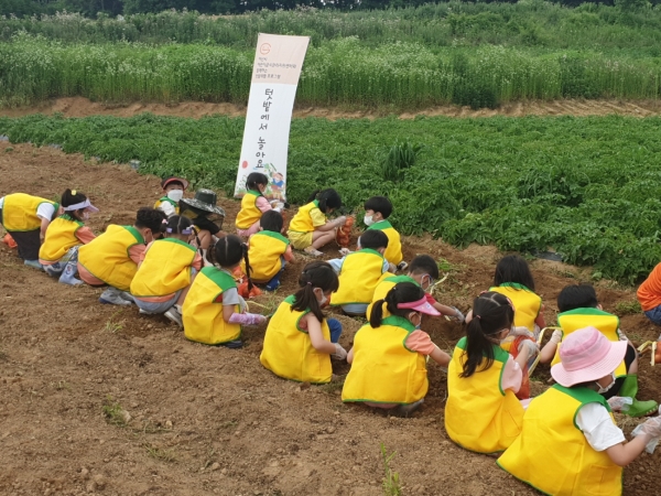 어린이들은 호미와 삽을 이용해 직접 감자를 수확했으며 이 감자를 가정에 가져가 먹어보는 활동을 했다.