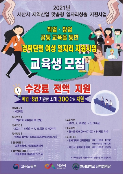 성기찬 서산시 일자리경제과장은 “공모 선정을 통해 관내 경력단절 여성들에게 취업 및 창업을 위한 교육을 지원하게 됐다”며 “시민들의 많은 참여를 바란다”고 밝혔다.