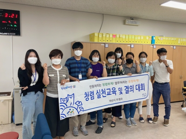 [충청뉴스큐] 아산시 위생과가 지난 5일 위생과 전 직원을 대상으로 청렴문화 확산을 위한 ‘청렴결의대회’를 개최했다.