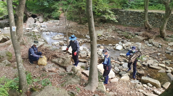 [충청뉴스큐] 아산시가 공공산림가꾸기사업으로 송악면 강당골 계곡 주차장을 정비하고 계곡부의 죽은 나뭇가지 제거, 가지치기 등을 실시해 장마가 오기 전에 정비사업을 완료했다.