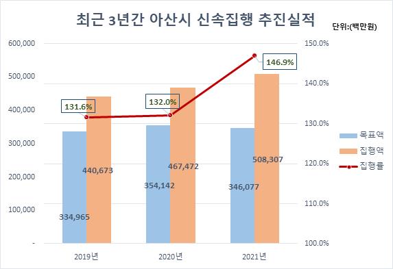 [충청뉴스큐] 아산시가 행정안전부에서 실시한 상반기 지방재정 신속집행 평가에서 3년 연속 최우수기관으로 선정돼 행정안전부 장관 표창 수상과 함께 재정 인센티브 5500만원을 받게 됐다.
