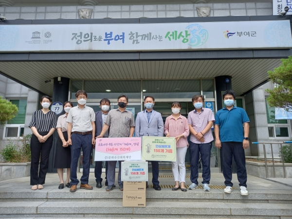 [충청뉴스큐] 부여군 홍산면행정복지센터는 지난 14일 문화유산회복재단이 어려운 이웃을 위해 체온계 150개를 기탁했다고 밝혔다.