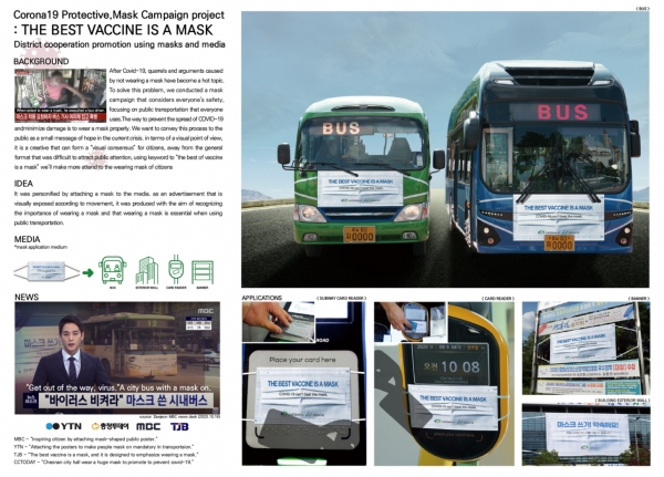 3개의 저작물 모두 선문대학교 시각디자인학과 학생들이 제작에 참여했으며 버스 광고 디자인 및 코로나19 포스터는 국제상을 수상한 작품이다.