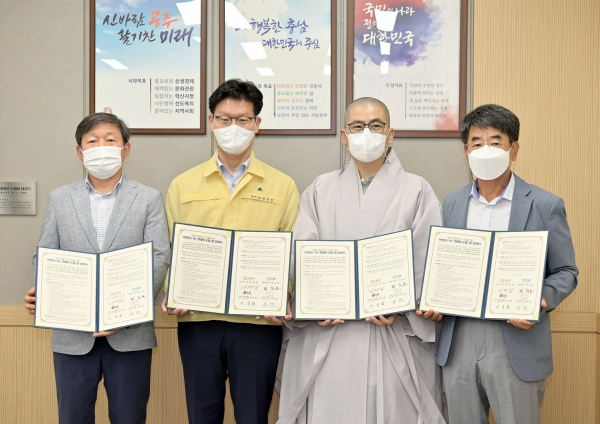 이날 협약식에는 김정섭 시장과 애터미 최승곤 대표, LG전자 금강옥룡점 이숙현 대표, 행복도량 대표 노휴 스님 등이 참석한 가운데 진행됐다.