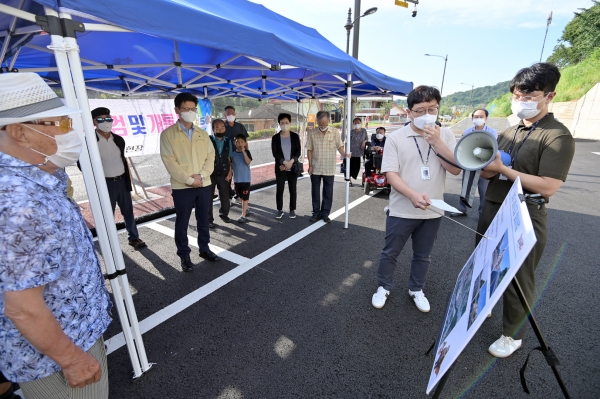 이번에 개통된 ‘이동백 소리길’은 옥룡 2통에서 옥룡 20통을 연결하는 도시계획도로로 사업 연장 390m, 폭 12m의 왕복 2차로로 건설됐다.