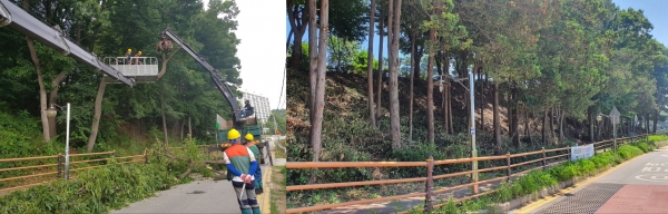 또한 등굣길 주변 임목들이 크게 자라 쓰러질 위험도 있어 송곡초에 등교하는 학생과 학부모들이 불안함을 느껴 시급한 정비가 필요했다.