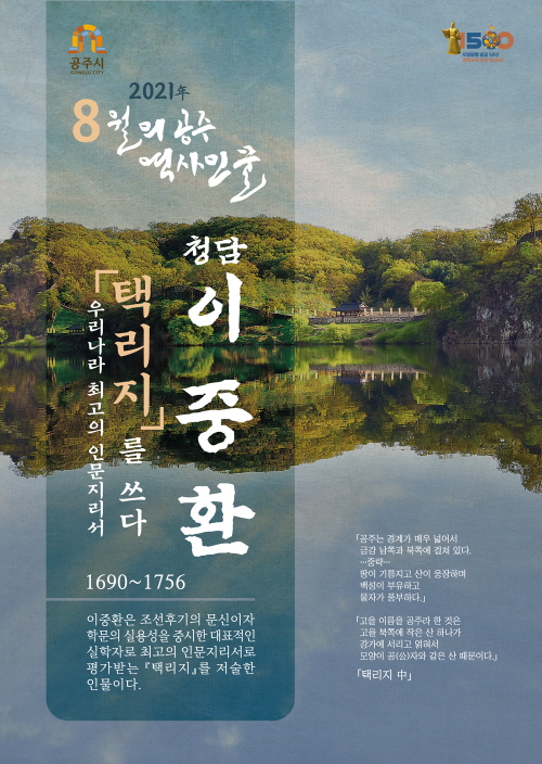 [충청뉴스큐] 공주시는 조선 후기 문신이자 실학자이며 최고의 인문지리서로 평가받는 ‘택리지’를 저술한 이중환을 8월의 역사인물로 선정했다고 28일 밝혔다.