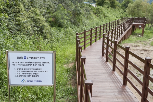 앞으로 송악저수지 수문 및 푸른들축산 단절구간을 연결하는 사업이 추진될 예정으로 아산시는 산책, 등산, 트레킹, 생태체험 등 다양한 체험을 즐길 수 있는 명품 트레킹길로 조성한다는 계획이라고 전했다.