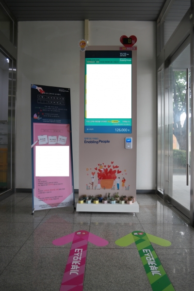 키오스크 기부는 삼성전자 DS부문 임직원들이 키오스크 스크린을 통해 아동들의 사연을 확인하고 사원증을 태그하면 1회당 1,000원 이상 기부하는 무인 단말기 모금 시스템으로 올해 3월 맺은 삼성전자 DS부문과 아산시, 아동권리옹호 NGO 세이브더칠드런의 취약계층 아동 지원 업무협약을 통해 대상 아동에게 키오스크 기부금이 전달됐다.