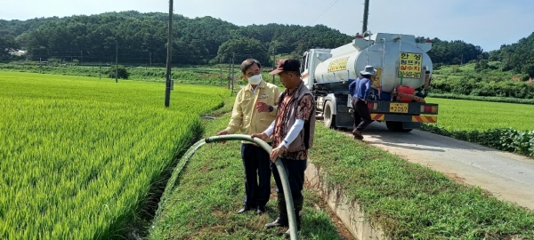 군은 판교면 수성리, 복대리, 등고리 등 폭염·한해 우려 지역 논 6ha에 이틀간 급수차 8대를 동원해 농업용수를 공급했다.