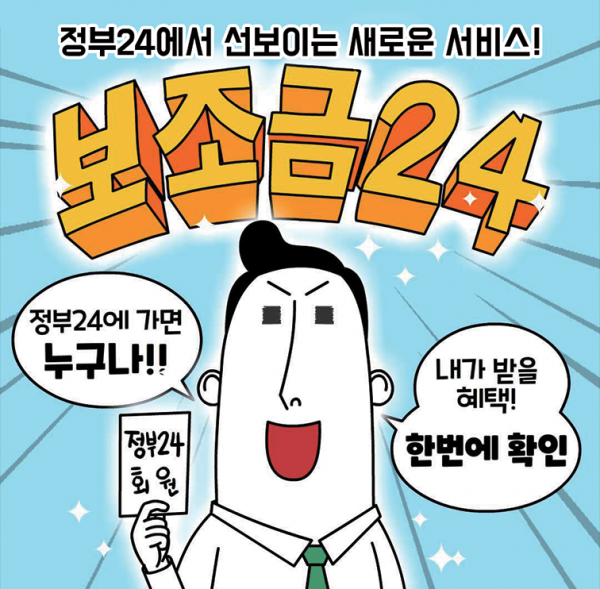 보조금24는 각 기관 및 홈페이지를 직접 방문하지 않고도 내가 받을 수 있는 정부혜택을 쉽게 확인·신청할 수 있는 맞춤안내 서비스이다.
