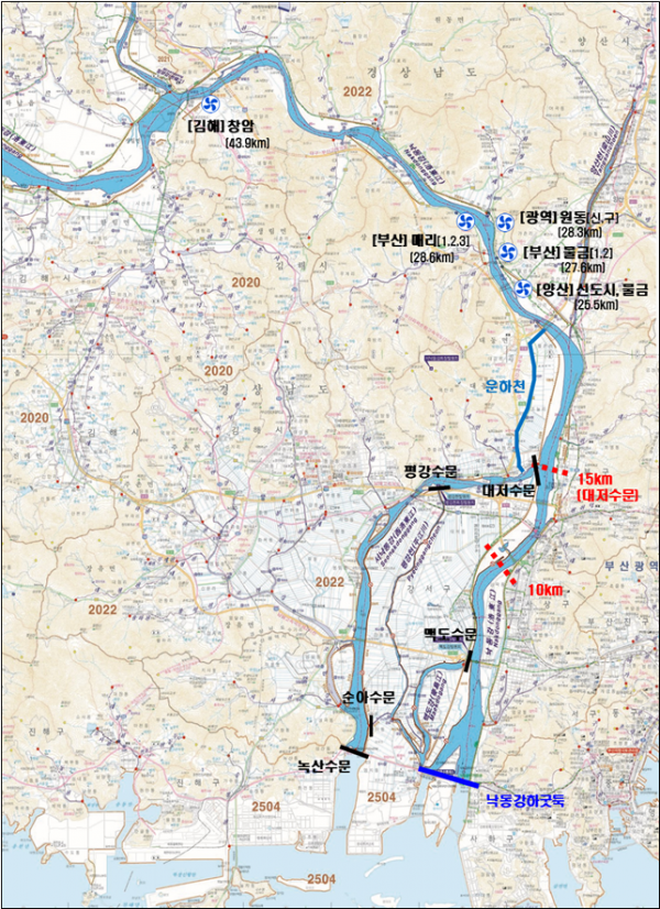하굿둑 개방은 상류유역 녹조 상황 등을 고려해 취수원 및 서낙동강 지역 농업에 영향이 없도록 대저수문 하류인 하굿둑 상류 9~12km 내외로 기수역을 조절할 계획이라고 전했다.