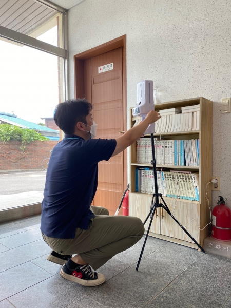 이번에 보급한 체온측정 자동 손 소독기는 비대면으로 간편하게 체온측정을 할 수 있으며 동시에 손 소독까지 가능해 코로나19 방역에 도움이 될 것으로 기대된다.