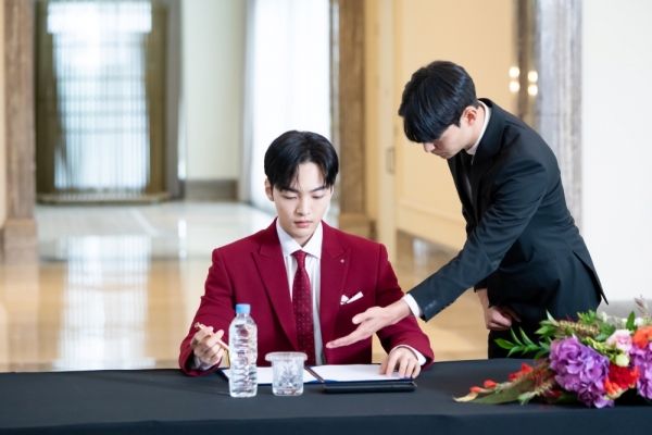 무학은 성공한 사업가다운 깔끔한 수트부터 강렬한 빨간색이 인상적인 레드 수트까지 완벽하게 소화하고 있어 다채로운 매력으로 보는 이들을 심쿵하게 한다.