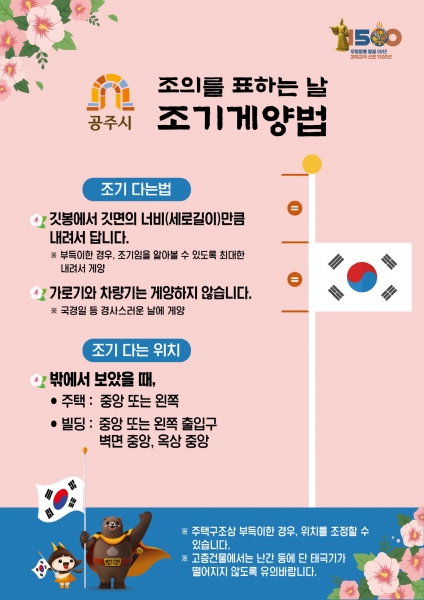 [충청뉴스큐] 공주시는 과거 일제에 주권을 뺏긴 참담했던 과거를 잊지 말자는 의미로 ‘경술국치 조기달기’ 운동을 추진한다고 27일 밝혔다.