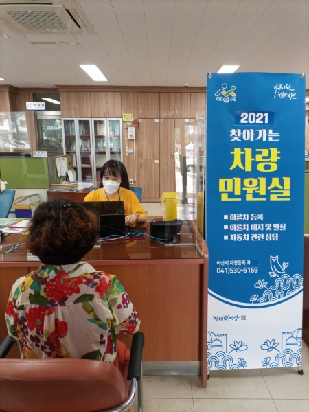 [충청뉴스큐] 아산시가 지난 26일 영인면 행정복지센터를 찾아 코로나19 방역수칙을 철저히 준수한 가운데 ‘2021년 찾아가는 차량민원실’을 운영했다.