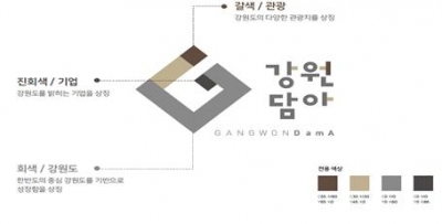 브랜딩 컬러의 진회색은 강원도를 밝히는 기업, 갈색은 강원도의 다양한 관광지, 회색은 한반도의 중심 강원도를 기반으로 성장함을 상징하고 있다.