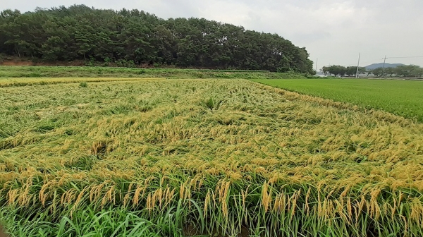 이때는 벼 익은 정도에 따라 조기 수확이나 벼 일으켜 세우기 등 후속 작업을 서둘러 선택해야 한다는 게 농업기술센터의 조언이다.