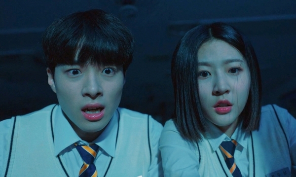 [충청뉴스큐] ‘우수무당 가두심’ 김새론, 남다름이 한밤중 교실 창틀에 위태위태하게 앉아 있는 윤정훈을 목격하는 현장이 포착됐다.