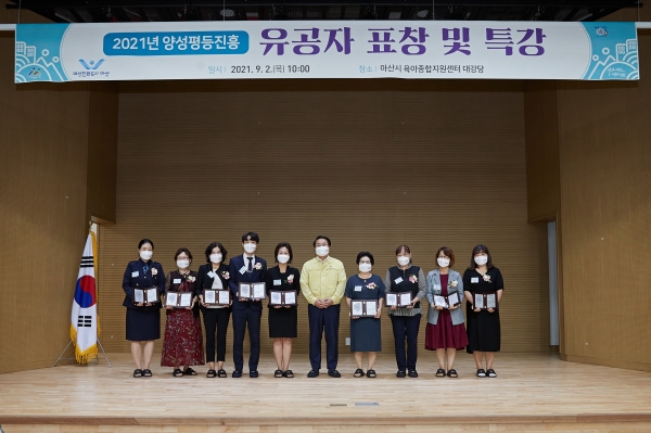 [충청뉴스큐] 아산시가 지난 2일 아산시 육아종합지원센터에서 ‘2021년 양성평등진흥유공자’ 25명에게 표창패를 수여했다.