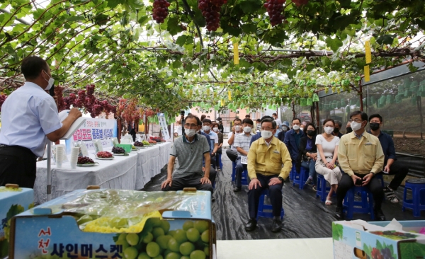 한편 서천군은 기후변화에 대응하고 농가소득 향상을 위해 2019년에 샤인머스캣을 도입하고 포도 재배농가를 중심으로 소모임을 구성해 재배기술 공유와 협력체계를 구축했다.