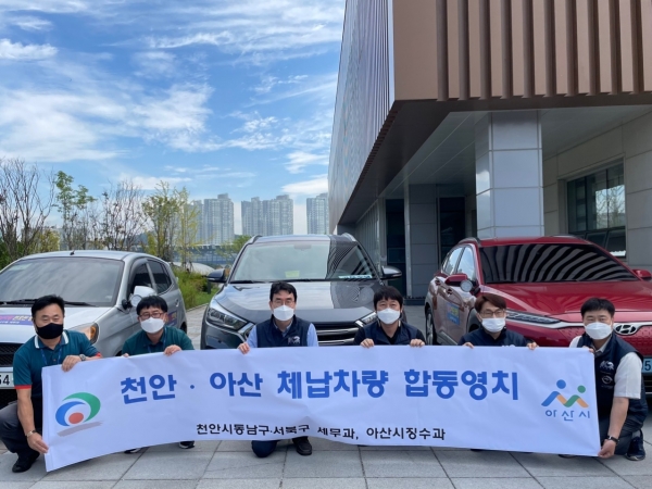[충청뉴스큐] 아산시는 지난 9일 효율적인 체납액 징수와 납세의식을 고취시키고자 천안시와 합동으로 체납차량 번호판 영치를 실시했다.