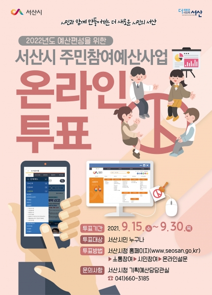 [충청뉴스큐] 충남 서산시가 2022년도 예산 편성에 시민 목소리를 반영하기 위해 ‘주민참여예산 온라인 투표’를 실시한다.